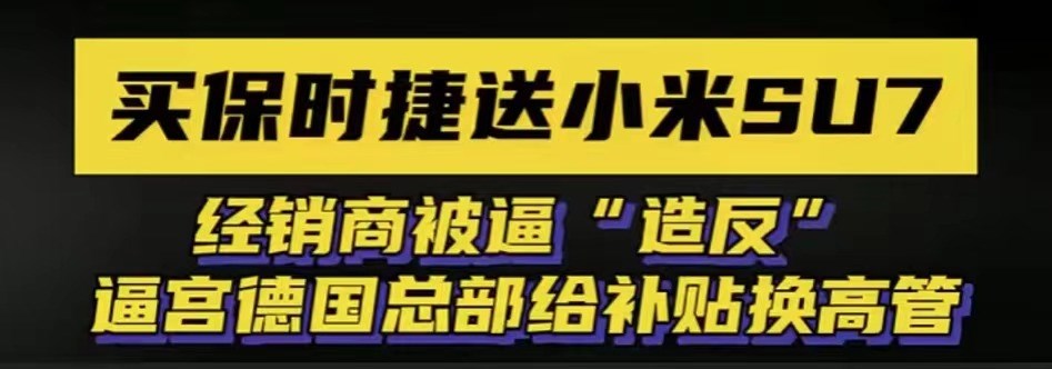 也就有了開頭,買保時捷Taycan送“小米SU7”,經(jīng)銷商被逼“造反”等消息。造反:部分經(jīng)銷商更是停止了進車。